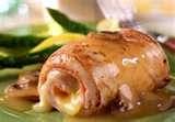 IF CHICKEN ISN’T THIN ENOUGH, POUND.THEN TAKE ONE SLICE EACH OF HAM AND SWISS AND PUT ON CHICKEN CUTLET, THEN ROLL UP WITH SHORT SIDE. HOLD TOGETHER WITH TWINE OR TOOTHPICKS (TWINE IS EASIER JUST DON’T FORGET IT’S ON THERE WHEN YOU EAT IT). ROLL CHICKEN WRAP IN FLOUR. SAUTE IN OIL UNTIL ALL SIDES ARE BROWN. TAKE CHICKEN OUT OF PAN AND SET ASIDE. ADD TO PAN, WINE TO DEGLAZE. THEN ADD CHICKEN BROTH. ADD CHICKEN BACK IN PAN AND COVER WITH CHEESE SLICES. COVER PAN AND SIMMER 15 TO 20 MIN.