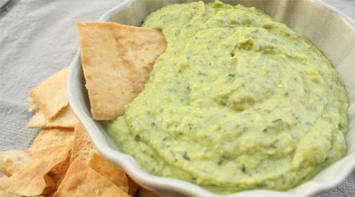 1. Remove the leaves from the basil and discard the stems. In the bowl of a food processor, blend the basil with the chickpeas and feta, scraping down the sides of the bowl with a rubber spatula as needed, until just combined.