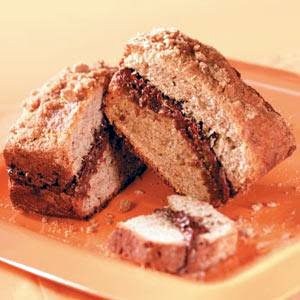 Divide half of the batter between two greased 8-in. x 4-in. loaf pans; sprinkle with half of the topping. Top with chocolate chips. Repeat layers of batter and topping.