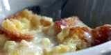 Place baking dish in another larger pan. Pour hot water into larger dish to reach 1 inch up side of dish. Bake the bread pudding for about 45 minutes to 1 hour, until custard is set and brioche is golden.