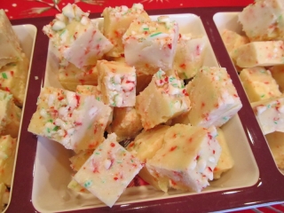 - 1 1/4 cups coarsely crushed peppermint candies (I used my Pampered Chef food chopper to crush the peppermints. I also used red & green candy canes to make the fudge even more colorful!).