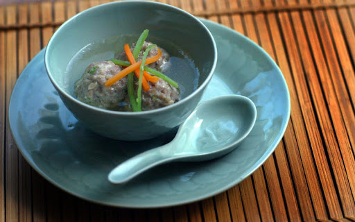 Chinese-style pork meatballs in broth