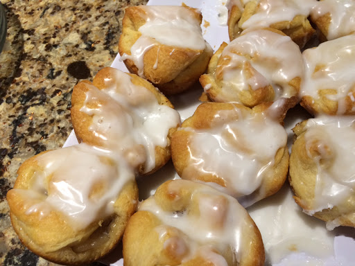 Spray two muffin tins with cooking spray. Open crescent rolls and separate into individual sections. Lay each separate section in muffin tin, widest section at bottom. Put 1-2 tbsp pie filling into each crescent roll. Gather edges of the dough and fold around filling. It's OK if there are some gaps. Bake for 12-15 minutes until tops are brown and dough is completely done.