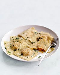 4. In a large pot of boiling salted water, cook half of the ravioli over high heat until al dente, about 3 minutes. Using a slotted spoon, transfer the ravioli to a platter. Repeat with the remaining ravioli and serve.