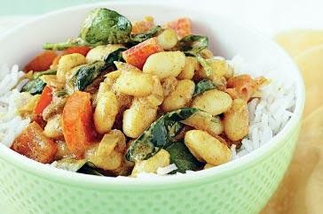 *Add stock and coconut milk. Bring to the boil. Add beans.