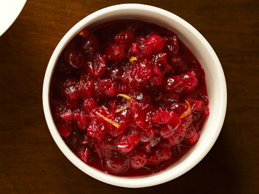 Combine one 12-ounce bag cranberries, 1 diced peeled Granny Smith apple, 1 cup sugar, 1/2 cup Cointreau or Grand Marnier, 1/2 cup water and 1/4 teaspoon each ground cinnamon and cloves in a saucepan over medium heat. Bring to a boil, then reduce the heat and simmer until the berries start to pop, about 10 minutes. Off the heat, stir in the grated zest of 1 each lemon and orange; chill.