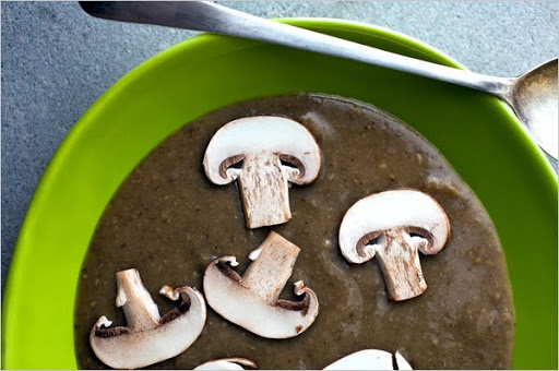 - This dish is similar to a cream of mushroom soup, but without the dairy. This soup is pure mushroom, with a couple of potatoes thrown in for thickening. Served with paper-thin slices of mushroom as garnish, it makes a very elegant soup.