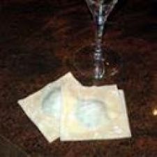 On a floured work surface, roll out chilled dough into a thin rectangular sheet of 24 by 8 inches. Use a pastry wheel or knife to cut rectangle in half lengthwise to make two long, thin rectangles. Spoon out meat filling, one heaping tablespoon at a time, onto one long strip of dough at 2-inch intervals. Place remaining dough strip on top, pressing down firmly around heaps of meat filling to seal. Use pastry wheel or knife to cut dough into square dumplings.