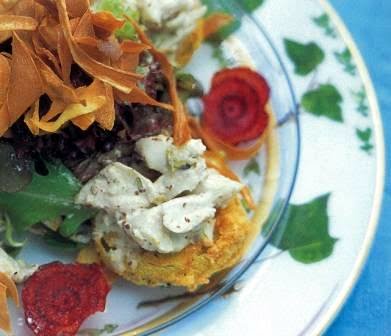 Chef’s Tip: Vegetable chips from the grocery also make excellent garnishes for this dish.