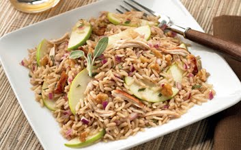 3. In a large bowl, toss together rice, chicken, green apple, red onion, walnuts and balsamic vinaigrette.