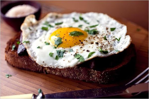 1. Toast the bread while you cook the mushrooms and the egg. When the bread is lightly toasted, rub with a cut clove of garlic if you wish.