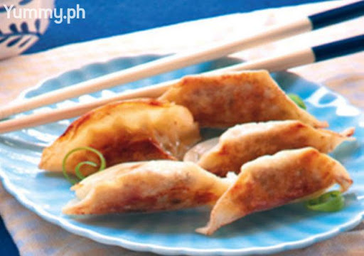 4 In a nonstick frying pan, add 1/2 cup water and 1/2 tablespoon oil. Arrange about 10 pieces of gyoza on the pan with the folded edges straight up. Cover and cook for 6 to 8 minutes or until the water has evaporated and the bottom has become crisp. Repeat with the remaining gyozas. Serve with a dipping sauce of vinegar and soy sauce.