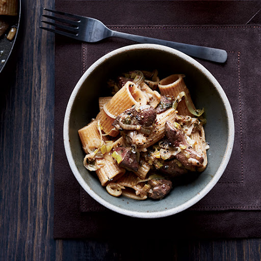 Spelt Rigatoni with Chicken Livers, Leeks and Sage