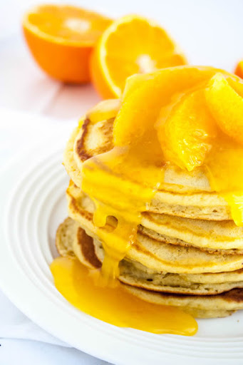 *I only used the zest from half the orange because I only needed one orange before I ended up making syrup instead of butter. If you want extra orange flavor, you could add in the full zest of an orange for the pancakes and then the full zest of the other orange for the syrup, if you prefer.
