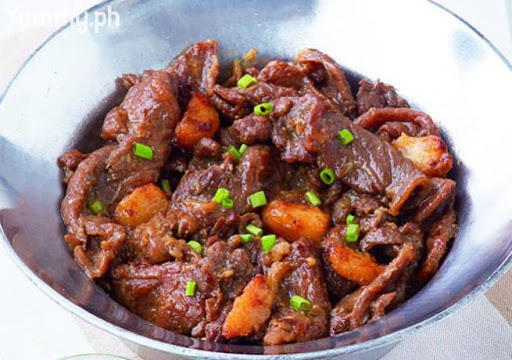 . Add oil and swirl it around to coat the wok. Add garlic cloves; turn and toss until light brown in color. Add beef and stir-fry for 2 to 3 minutes until brown. Add Chinese wine and stir continuously until reduced by half.
