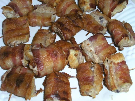 Cut crust off of all slices of bread. Spread undiluted soup on bread like you would mayonnaise. Roll bread up Jellyroll style. Take a strip of bacon and cut in half lengthwise. Wrap one piece around one end of jellyroll and the other piece around the other end. Cut in half between pieces of bacon. Do this until bread and soup are gone. Place on sided cookie sheet and bake for 20 minutes on 350 or until a little crispy. Place on paper towel to drain. Place toothpick in each to serve. Each slice of bread makes 2 hordorves.