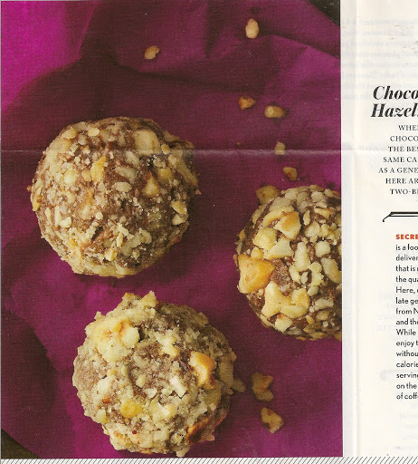Chocolate is a lood that, at its best, delivers a hit of pleasure that is mostly unrelated to the quantity 0f the treat. Here, creamy milk chocolate gets a hazelnut kick Irom Nutella, Frangelico, and the nuts themselves. While you can certainly enjoy two or three truffles without going overboard calorie-wise, we suggest serving one perfect treat on the saucer with a cup of coffee or espresso .