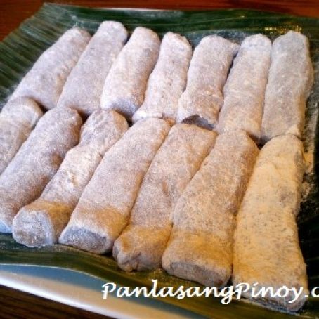Divide the mixture into parts and roll over the dusted sweet rice flour until a cylindrical shape is formed.