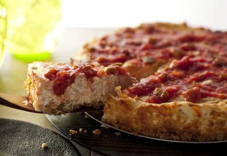 4.Top the cheesecake with the salsa and cut it into 12 wedges.