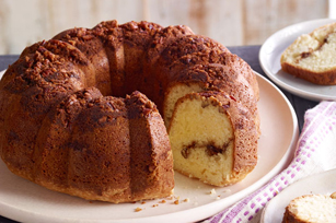 Preheat oven to 350. Cream butter and sugar, add eggs, one at a time, beating well after each addition. Fold in sour cream and vanilla. Sift together dry ingredients. Add to creamed mixture. Spoon half of the mixture into greased bundt pan. Mix together pecans, brown sugar and cinnamon. Sprinkle 3/4 of mixture on batter. Do not let the nut mixture touch the sides of the pan. Top with the rest of the batter and sprinkle with remaining nut mixture. Bake for 45 minutes to 1 hour. Cool cake in pan for 10 minutes.