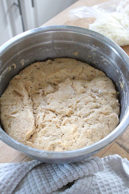 Place the dough in a lightly oiled bowl. Cover it with plastic wrap, and let rise till very puffy, and doubled in size about 1 hour and 15 minutes.