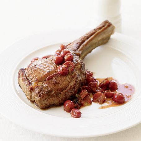Rub the veal chops with the remaining 1 tablespoon of butter and season with salt and pepper. Push the grapes to one side of the baking sheet. Add the veal chops and roast for about 5 minutes, or until sizzling underneath. Turn the chops and roast for 5 minutes longer for medium-rare meat. Transfer the veal chops to a platter, scrape the grapes and juices on top and serve.
