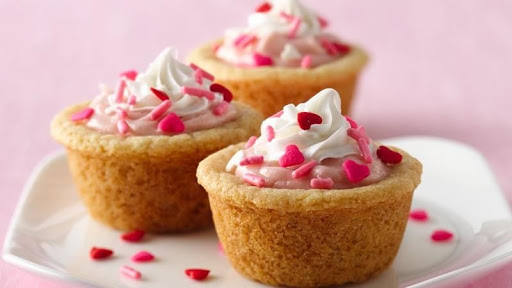 Make cookie dough as directed on package. Roll dough into 32 (1-inch balls); place in greased muffin cups. Press each ball in bottom and up side of muffin cup. Bake at 350°F for 12 to 15 minutes or until edges just begin to brown. Cool 20 minutes. Remove from pan; cool completely.