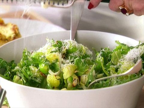 Salad: Using a small paring knife, remove the outer leaves from the Brussels sprouts. Reserve the cores for another use. Bring a large saucepan of water to a boil over medium-high heat. Add the Brussels sprout leaves and cook for 1 minute. Drain and put in a bowl of iced water, then transfer to a colander to drain. Put the Brussels sprout leaves, arugula, endive, and almonds into a large salad bowl. Add the dressing and toss together. Sprinkle with the cheese and serve.