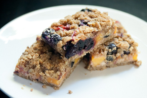 These crumble bars are packed with blueberries and peaches, they are so good they will have you coming back for seconds!