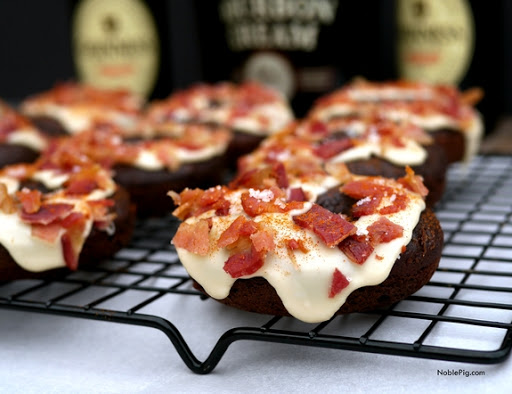 Chocolate Guinness Doughnuts with Bourbon Cream Glaze and Bacon