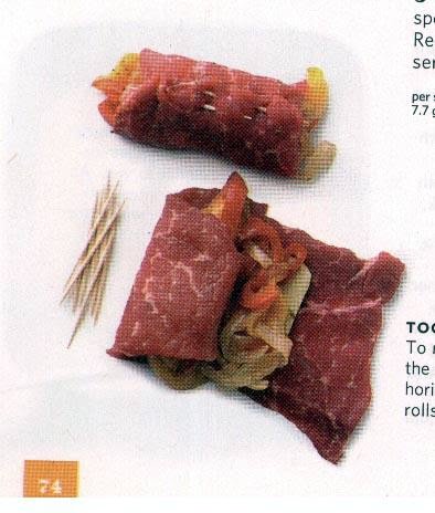 Place a medium skillet over med-high; brush with 1 tea. oil. Place meat rolls, seam side down, in skillet and cook, turning occasionally, until beef browns and cheese melts (about 8 mins). Reduce heat if meat browns too quickly.