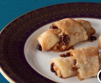 On a well-floured board, roll each ball of dough into a 9-inch circle. Spread the dough with 2 tablespoons apricot preserves and sprinkle with 1/2 cup of the filling. Press the filling lightly into the dough. Cut the circle into 12 equal wedges—cutting the whole circle in quarters, then each quarter into thirds. Starting with the wide edge, roll up each wedge. Place the cookies, points tucked under, on a baking sheet lined with parchment paper. Chill for 30 minutes.