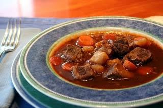 "Have I got the best recipe for you!" my friend Tomas announced, upon his return from a trip to photograph vineyards in Italy. "It's an Irish beef stew," he added, "and it's the best thing I've ever had." Apparently the chef at one of the wineries Tom was visiting prepared this stew for Tom, based on a Bon Appetit recipe, with the main difference being the substitution of Guinness (a very dark beer) and excellent red wine for some of the beef stock the recipe called for. Always eager to try new recipes with friends, I made my way to Tom's house and we cooked this up together for his family. As I suspected, the addition of Guinness and red wine makes all the difference.