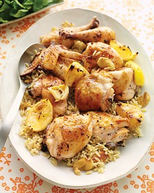 Chicken, Lemon-Roasted with Arugula Salad and Dilled Orzo
