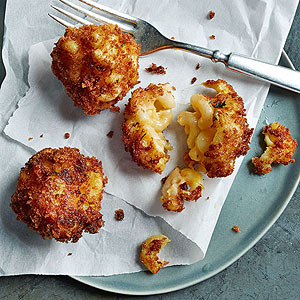 5. Heat oil in a deep 4-quart pot to 360 degrees on a deep-fry thermometer. Fry 6 or 7 mac and cheese bites at a time for 3 to 4 minutes per batch, until golden. Serve immediately.