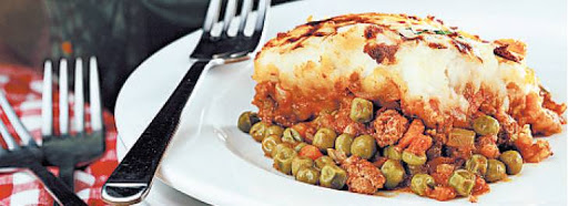 4 To assemble, spread the cooked, seasoned vegetables over the bottom of an appropriately sized, ovenproof dish. Spoon the meat sauce evenly over the vegetables. Spread or pipe the potatoes over the meat in an even layer. Bake in a 400-degree oven until the sauce is bubbling and the potatoes are beginning to brown, 30-45 minutes.