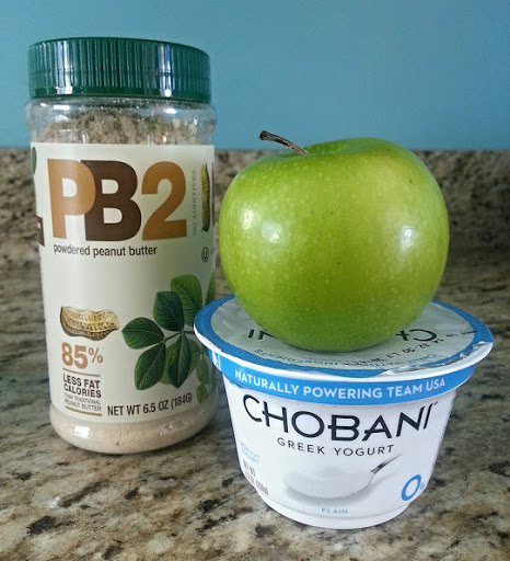 I love slicing an apple and add one table spoon of PB2 to a ziplock bag. Add your Apple slices, shake, let the natural apple juices wet the PB2, then enjoy!
