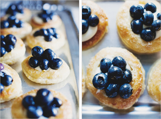 6. Dollop about 1 Tbsp. of the creamy mixture in the middle of each tart (again, this will depend on the size). Put the blueberries in a bowl. Warm the remaining 1 Tbsp. honey in the microwave for 15 seconds to loosen it, pour over the berries along with the last 1 Tbsp. of lemon juice and toss to coat. Pile a hefty spoonful of berries on top of the creamy mixture. Serve at room temperature.