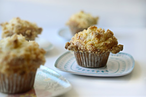 In a separate bowl, combine the streusel ingredients. Pinch pieces together in your fingers and generously sprinkle over each muffin.