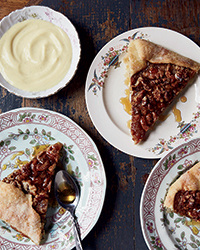 Walnut Galette with Bourbon-Vanilla Custard Sauce