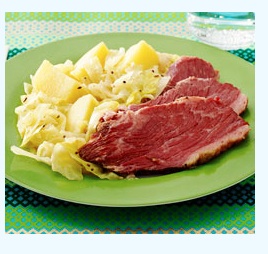 Combine brisket, onion, cabbage and potatoes in a slow cooker, add spices, mustard and beer and stir to combine. Cover and cook on high for 4-6 hours, or on low for 7-9 hours.Remove corned beef brisket from slow cooker and slice into ½-inch thick slices. Use a slotted spoon to remove cabbage and potatoes to serve.