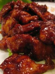 To make the sauce, add all the ingredients in a small saucepan. Heat the sauce and stir continuously. When the sauce starts to bubble, turn off the heat, and put the fried pieces of pork into the saucepan. Mix the pork and sauce until all pieces of meat are coated with the sauce.