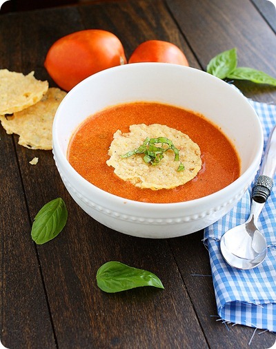 Soup: Roasted Tomato Basil Soup with Parmesan Crisps