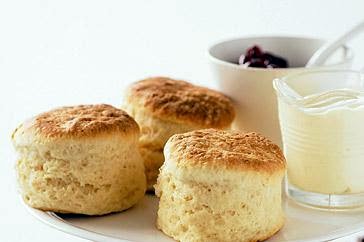 Using a 5cm cutter dipped in flour, cut 12 rounds from dough. Press scraps together, cut 4 more rounds. Place scones, side by side, on baking tray. Sprinkle tops with a little plain flour.