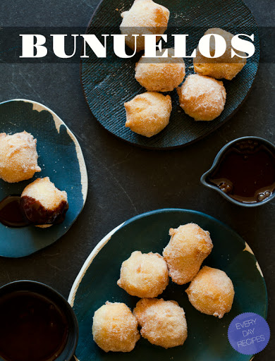 5. For sauce: Place ingredients into a small saucepan and place over low heat. Stir together until chocolate and butter have melted and ingredients have come together. Serve with bunuelos.