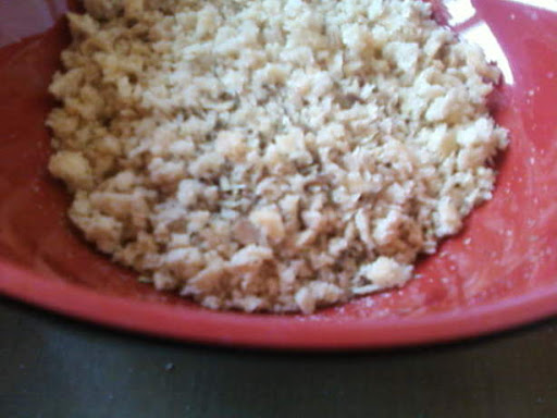 Add herbs, salt and pepper and process for 15-20 seconds, or until the mixture is ground into fine crumbs.