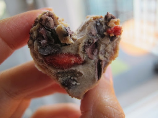 Top with raw cacao nibs and goji berries and freeze for at least 2 hours