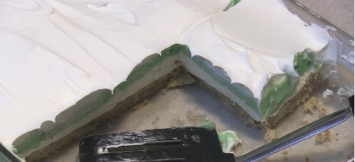 Mix the milk and pudding mix together until thickened. Pour over the cream cheese layer.