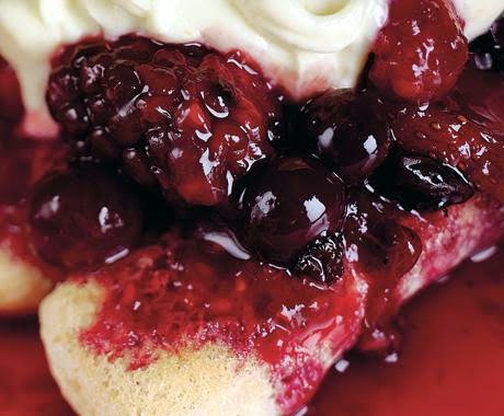Using pastry brush, brush ladyfingers on both sides with syrup. Arrange in single layer in 13x9x2-inch glass baking dish, cutting to fit and covering bottom of dish completely. Pour chilled berry mixture over.