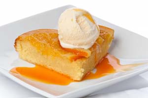 Transfer the cake in the pan to a wire rack to cool. Using a knife, loosen the edges of the cake from the sides of the pan. The cake will fall upon cooling. If using a springform pan remove the ring. Remove the parchment paper and transfer the cake to a serving platter. Slice and dust with powdered sugar, top with your favorite fruit, whipped cream, or ice cream.